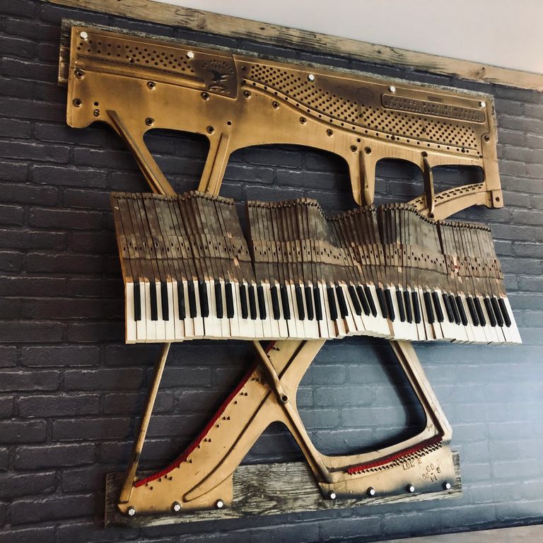 Uncategorized Piano Harp Wall Art : A big grand piano sitting in your living room and a telecaster hanging by a wall make for really attractive home décor. The mine cafe, jerome picture: